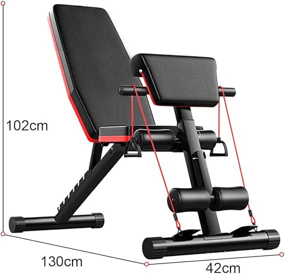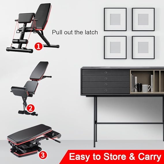 • 【FOLDABLE WORKOUT BENCH】: The folding strength training bench could be folded easily, simple & easy to carry and store. This full body workout bench can be stored in a corner of your home gym or in a closet, and can slide under your bed, making it great for home workouts and trips.